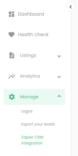 - Navigate to “Manage -> Zapier” section on the left-hand menu.