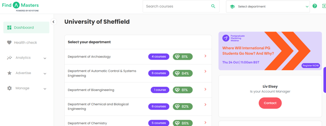 An audit of your listings means our Client Services team, will update your listings for you, using the information in your online prospectus. It is free of charge*, and requires no involvement or time from your institution's team. Simply confirm the link for the online prospectus you'd like us to use, and we'll take care of the rest, and let you know when your courses are updated.