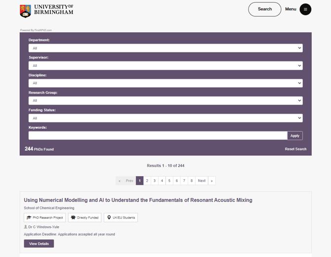 It can be difficult to maintain and update a robust directory of research opportunities that your institution offers. However, if you have research opportunities listed with us on FindAPhD (find out more about listing with us here) you can take advantage of our free FindAPhD CONNECT tool, to seamlessly integrate those listings onto your own website, on any webpage you would like, with dozens of customisable search options.